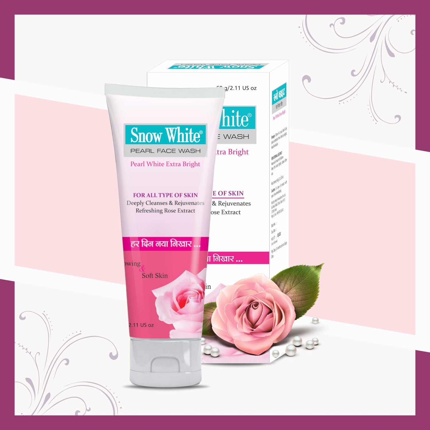 Snow White Pearl Face Wash is nurtured with the goodness of Rose, Orange, Sugarcane, Lemon