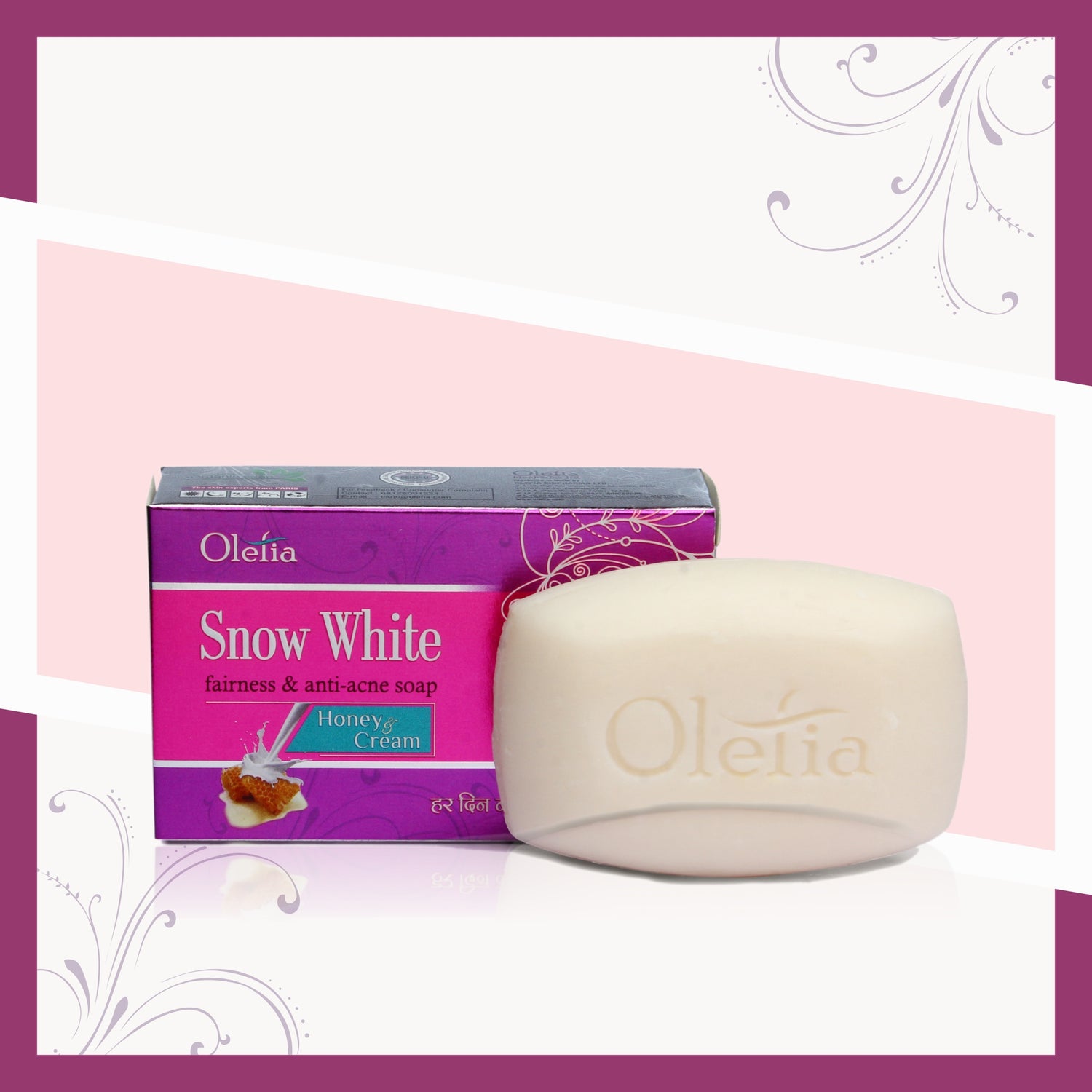 Snow White® Soap contains Honey, Milk , Vitamin E, Grape Extract, Tamarind Extract, Rose Oil & Lime Oil for Radiant and glowing skin. Snow White® Soap is an excellent blend of gentle cleansing agents which cleans and removes excess dirt, Oil and bacterial growth. Snow white anti acne and Oil control skin formula keeps your skin glowing with excellent fairness. Snow White® Soap glycerin in soap helps to keep the skin hydrated.
