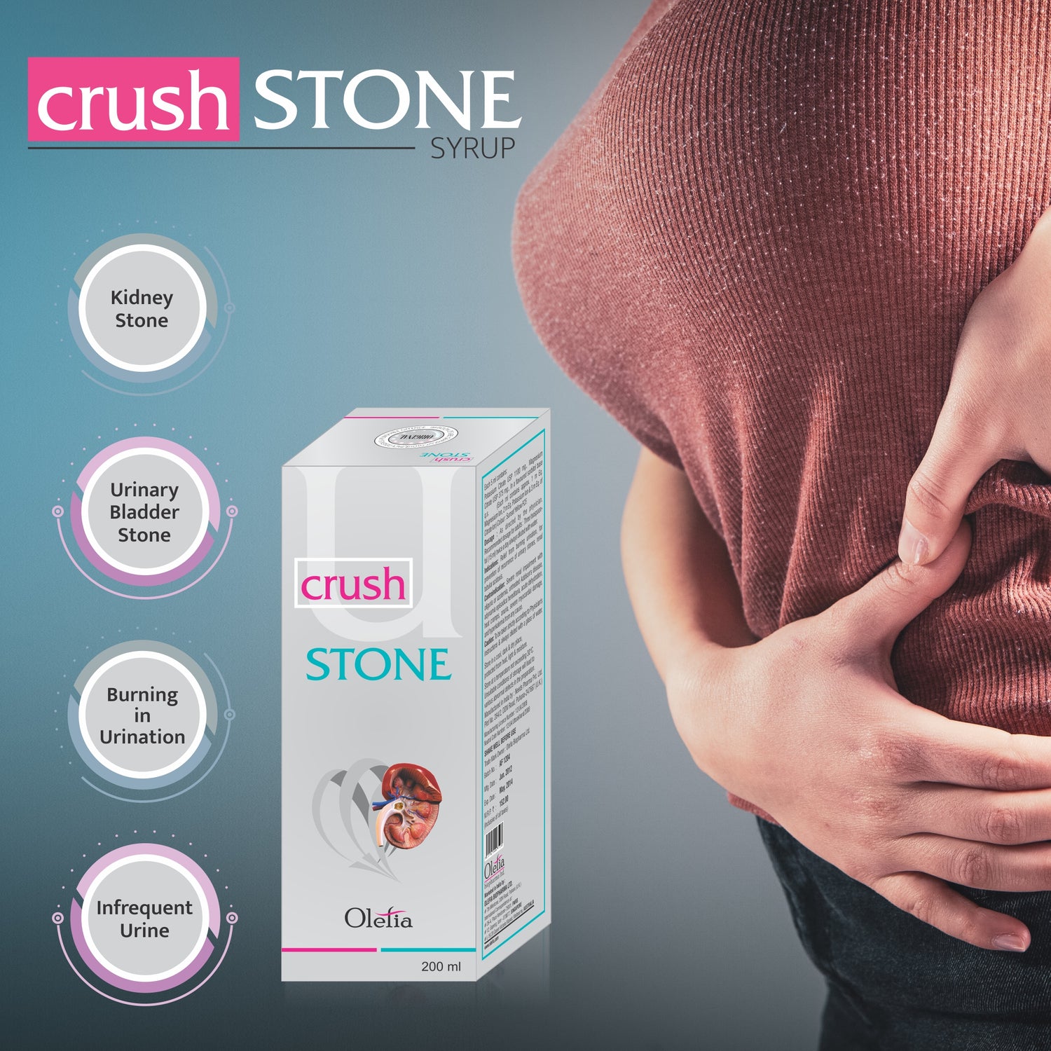Crush Stone Syrup is a scientifically formulated and clinically proven formula that effectively eliminates all types of stones from the kidneys.