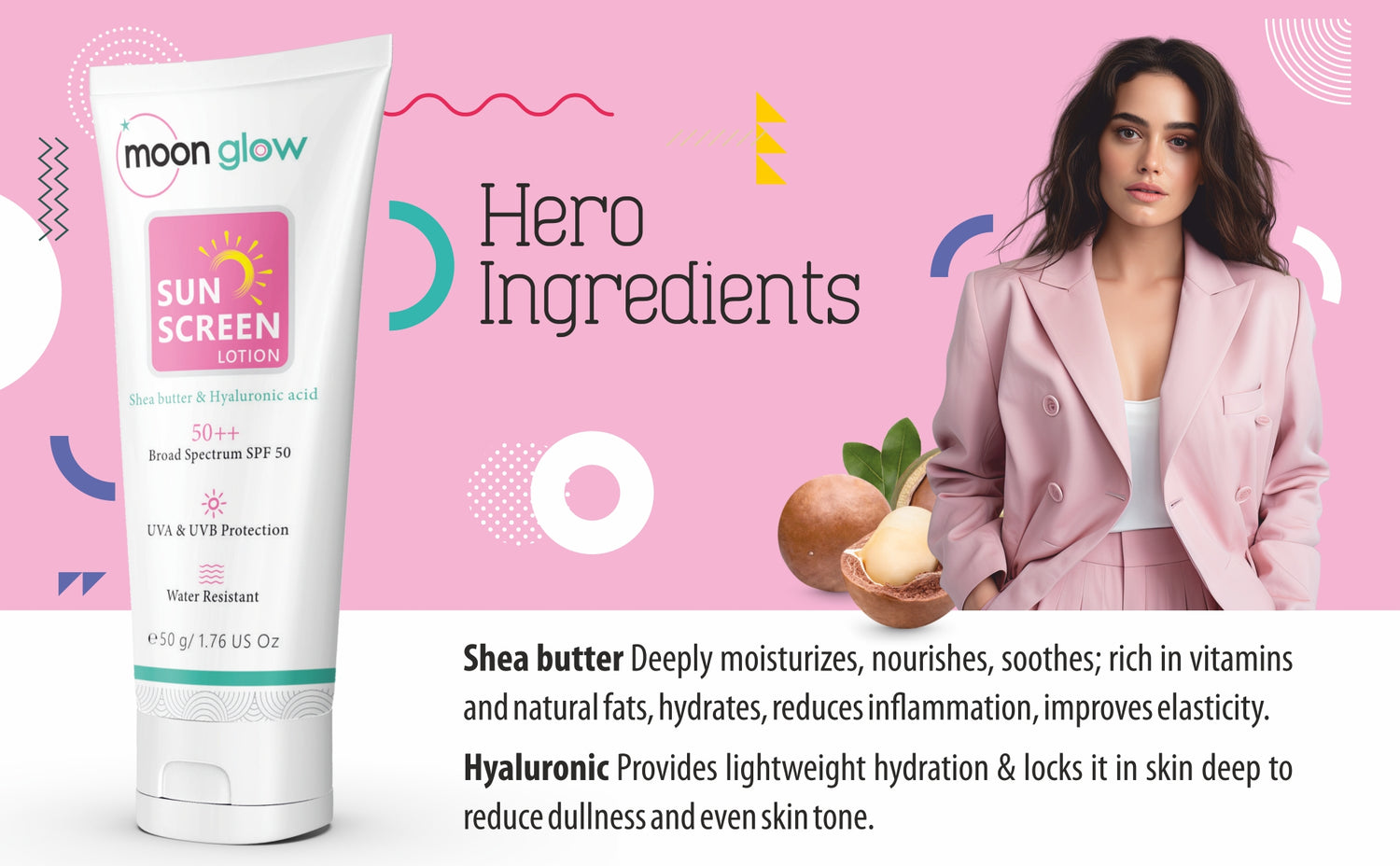 Moon Glow Shea Butter & Hyaluronic Acid SPF 50 PA+++ Sunscreen Lotion